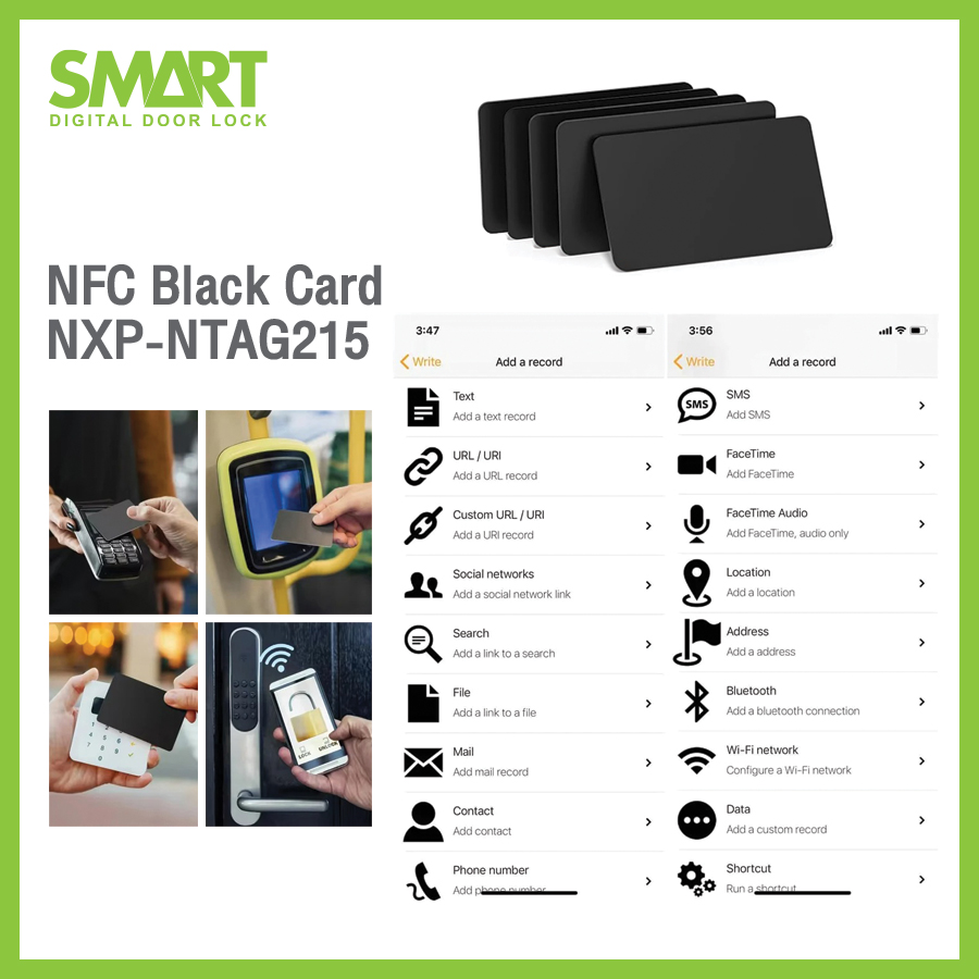 NFC Black Card สำหรับการใช้งานหลากหลาย เช่น การชำระเงินแบบไร้สัมผัส (Apple Pay, Google Pay), การเข้า-ออกอาคาร/โรงแรม (คีย์การ์ด), การแตะเพื่อรับข้อมูล, การแชร์ข้อมูล, และตั๋วโดยสาร